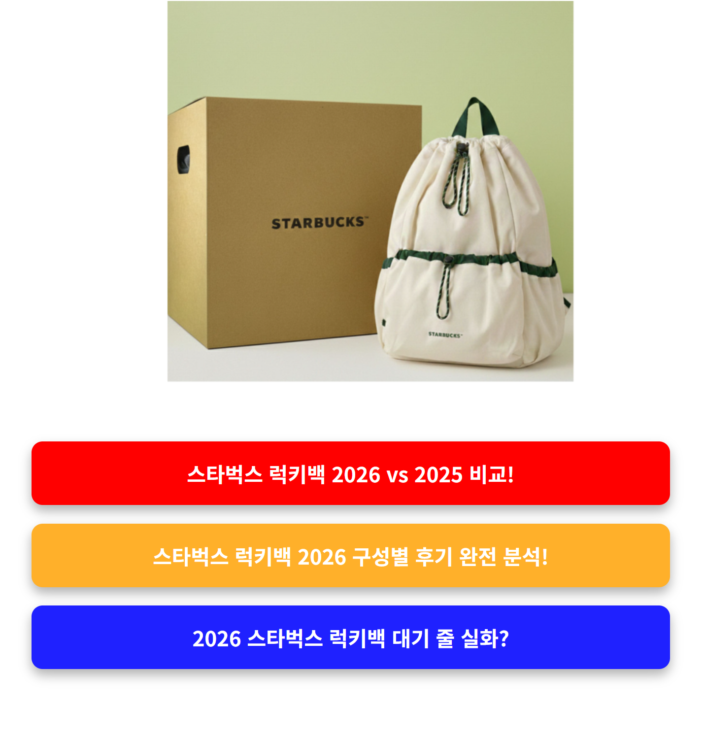 스타벅스 럭키백 2026, 벌써 후기가 쏟아지고 있습니다. 과연 어떤 구성품이 ‘득템’이고, 어떤 건 ‘실망템’일까요? 수많은 소비자들의 실시간 리뷰를 바탕으로 올해 럭키백의 실제 품질과 만족도를 분석했습니다. 구매를 망설이고 있다면, 이 글이 결정에 도움이 될 거예요!